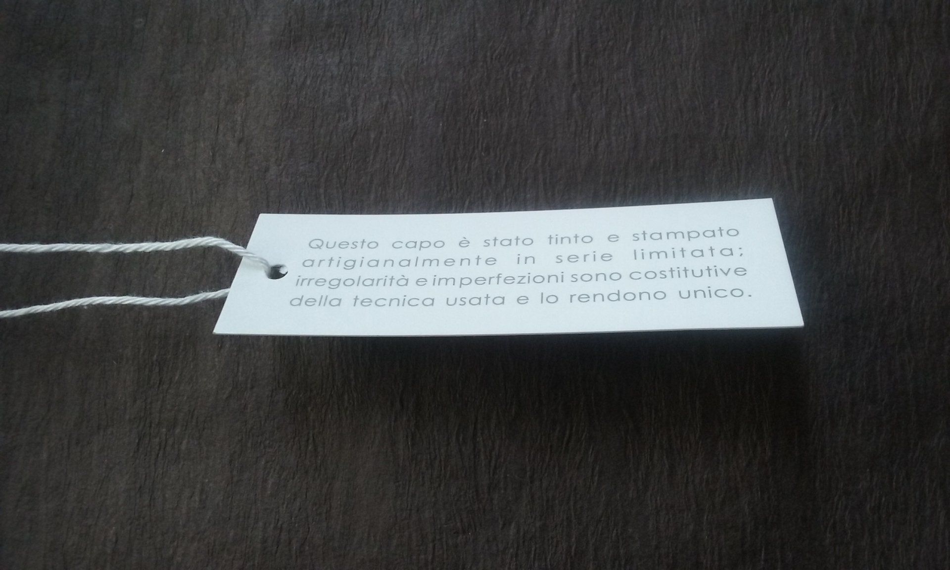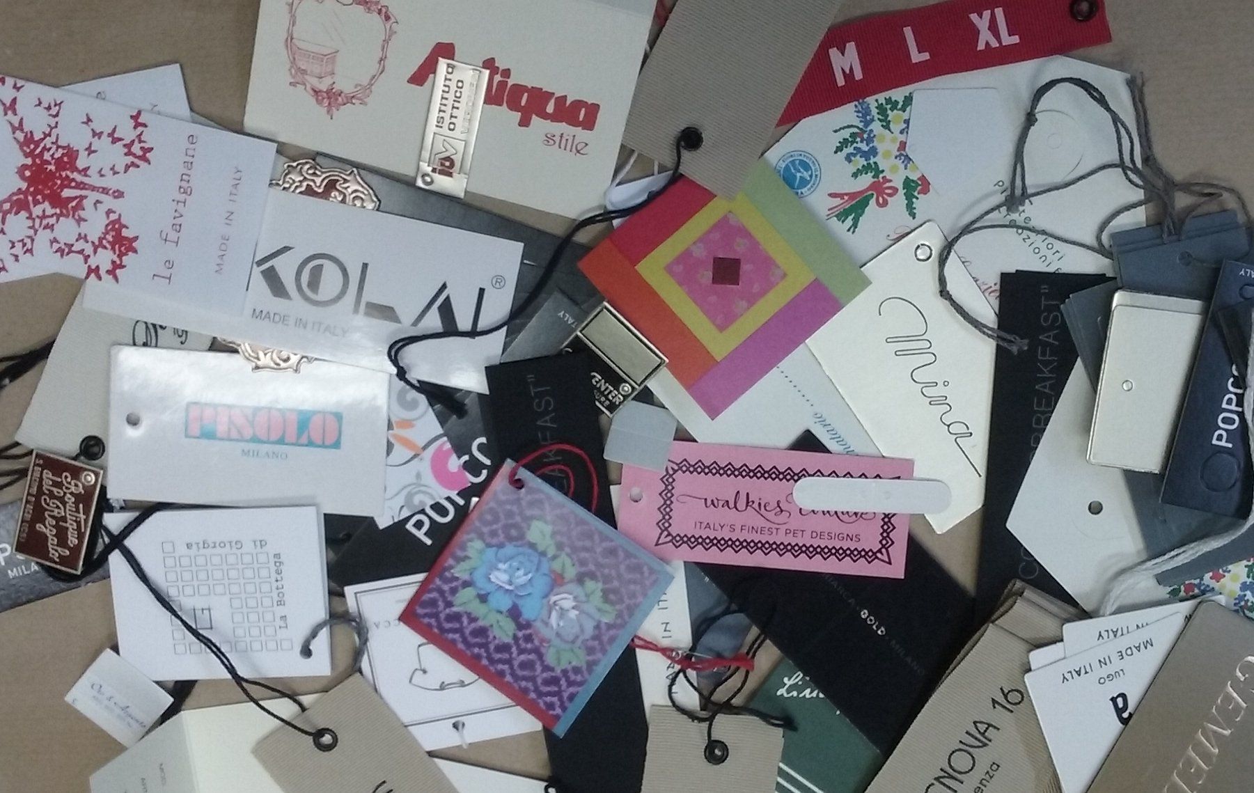 L’utilizzo di diversi supporti ci permette di proporre soluzioni originali per cartellini e tag realizzati in cartone e tessuto o accoppiando materiali con rifiniture uniche . Pronti per essere utilizzati, i cartellini possono essere forniti completi di cordini (anche personalizzati) sigilli e spille.